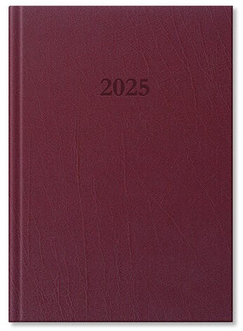 Határidőnapló Period Standard A/5 napi bordó műbőr 2025 méret: 145×205 mm terjedelem: 352 oldal (16 információs oldal, 320 naptároldal, jegyzetek, telefonregiszter) naptárbeosztás: hétköznap 7-21 órás, 30 perces osztásban újdonság: 2026 januári tervező papír: 70 g/m2 ofszet, fehér nyomás: 2+2 szín, szürke-piros naptárfedél: műbőr kötészet: cérnafűzött extra: sar
