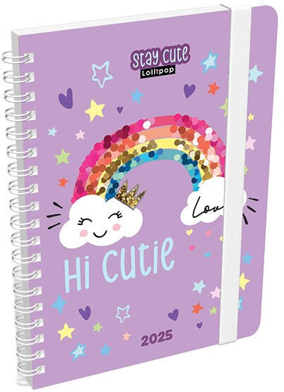 Határidőnapló LIZZY CARD Lollipop Stay Cute B/6 heti spirálozott gumis 2025. B6 méretű, spirálozott, gumipántos, heti tervező naptár, matrica oldallal, 128 +2 oldal, Mérete: 118x163 mm