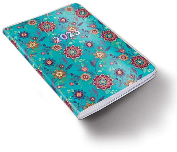 Realsystem 2025 2-Day 5441-65 virágminta B6 kétnapos beosztású zsebnaptár Kétnapos agenda beosztás + jegyzetlap, négyféle exkluzív műbőr borítóval, illetve színes soft-touch fóliázott papírborítóval, jelzőszalaggal, sarokperforációval. B6 kétnapi beosztású, 240 oldal, cérnafűzéssel, 70g-os fehér papírral. Egyediesítés: présfólia, vakdombor (csak 04,07), fémsarok