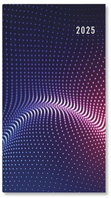 Határidőnapló Period Basic Zsebnaptár álló Galaxy papír 2025 Méret: 90×165 mm Terjedelem: 140 oldal (16 információs oldal, 112 naptároldal, 2026 januári tervező, jegyzetek, telefonregiszter) Naptárbeosztás: hétköznap 8–17 órás, heti beosztás Papír: 70 g/m2 ofszet, fehér Nyomás: 2+2 szín, szürke-piros Naptárfedél: fóliázott színes papír Kötészet: cérnafűzött E
