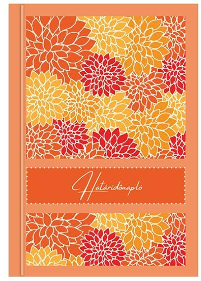 Határidőnapló ALISCA A/5 napi fehér lapos narancs virág bianco Napi beosztású, nem fix napokkal, fehér papíron egy színnel vagy mintával nyomva. Az egyszínű műbőr keménytáblával és présfólianyomással, a mintás borító az előoldalon szivacsos táblával, matt fóliával és UV lakkal.