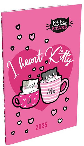 Zsebnaptár LIZZY CARD KitTok Heart Catto A/6 heti papírborítós 2025. A6 méretű, divatos, heti bontású zsebnaptár, 64 oldal, irkafűzött, Mérete: 89x139 mm