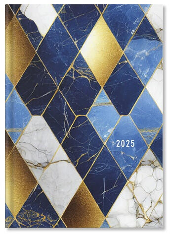 Határidőnapló Period DELUXE A/5 napi Marble papír 2025 Méret: 145×205 mm Terjedelem: 352 oldal (16 információs oldal, 320 naptároldal, 2026 januári tervező, jegyzetek, telefonregiszter) Naptárbeosztás: 7–21 órás, 30 perces osztásban Papír: 70 g/m2 ofszet, fehér Nyomás: 2+2 szín, szürke-piros Naptárfedél: ezüstfóliázott, UV lakkozott színes papír Kötészet: cérnafűz