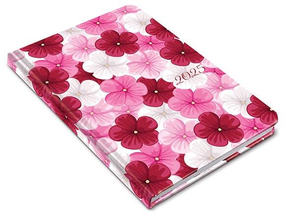 Realsystem 2025 Picture 5321-62 magnólia A5 napi beosztású határidőnapló Különböző felületnemesítéssel, illetve fóliával bevont papírborító, jelzőszalaggal és sarokperforációval. A5 napi beosztású, 352 oldal, cérnafűzéssel, 70g-os fehér papírral. Egyediesítés: présfólia, fémsarok (arany/ezüst). Méret: 145x205 mm
