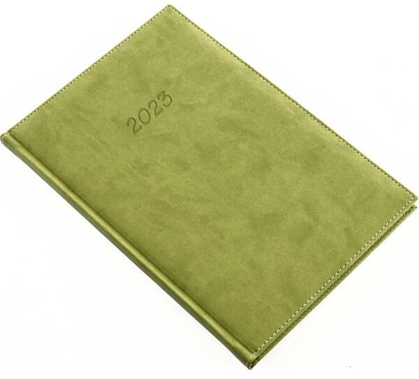 Realsystem 2025 Bolero 5612-48 B5 heti beosztású világoszöld határidőnapló Puha tapintású, hőre színeződő matt műbőr, világos varrással, jelzőszalaggal és sarokperforálással. B5 heti beosztású, 144 oldal, 13 hónapos, cérnafűzéssel, 70g-os chamois papírral. Egyediesítés: présfólia, vakdombor, fémsarok (arany/ezüst). Méret: 165x240mm