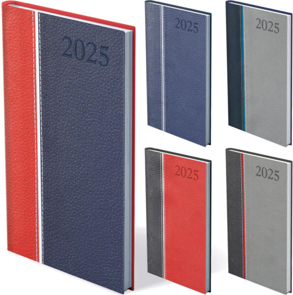 A Naptár, tervező, A5, napi, DAYLINER Memphis, kék-zöld (NMA5KZ25) Két harmonizáló színű, bőrhatású anyag egyedi összeillesztésével, gyönyörű varrással készült agendák nagy méret-és színválasztékban. -matt, bőrhatású borító -időbeosztás: félórás, 8-18.00 h -lapok 70 g/m2, fehér ofszetpapírból -szürke-vörös nyomat -jelzőszalaggal -sarokperforáció -Budap