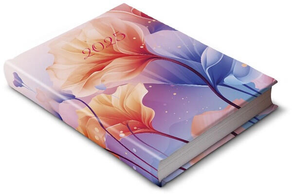 Realsystem 2025 Librobello Kalendárium Hölgyeknek 5421 Floral határidőnapló Librobello - Kalendárium Hölgyeknek, A nők lapja ajánlásával, 3D-lakk különféle mintával. B6 napi beosztású, 400 oldal, 70g fehér papírral, cérnafűzéssel, jelzőszalaggal és sarokperforációval. Egyediesítés: vakdombot, fémsarok(arany/ezüst) Méret: 115x165 mm