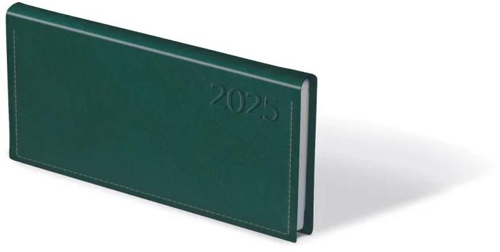 TopTimer zsebnaptár, 2025, T030, heti beosztás, zöld A TopTimer Traditional határidőnapló. család tagjai fényes bőrhatású kemény borítóval készülnek. A zsebnaptárban minden hét egy dupla oldalt kapott, a napoknak egy-egy függőleges, a hétvége napjainak fél-fél függőleges rubrika jutott a dupla oldal alján havit összesítő található a dátumokkal, a vasárnapokat piro