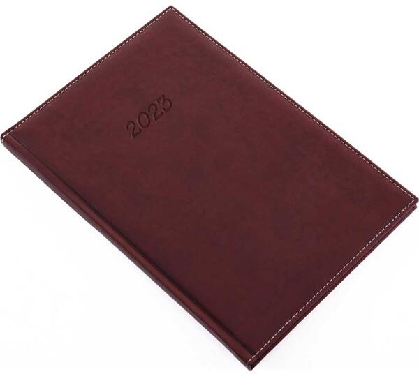 Két harmonizáló színű, bőrhatású anyag egyedi összeillesztésével, gyönyörű varrással készült agendák nagy méret-és színválasztékban. -matt, bőrhatású borító -időbeosztás: félórás, 8-18.00 h -lapok 70 g/m2, fehér ofszetpapírból -szürke-vörös nyomat -jelzőszalaggal -sarokperforáció -Budapest és Magyarország térképpel -havi összesített naptár -éves te