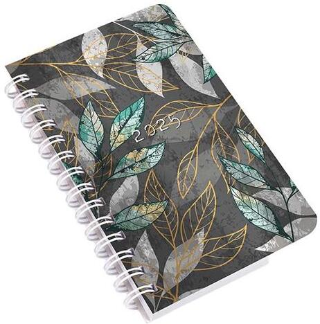 Zsebnaptár REALSYSTEM SP3 spirál mini 78x128mm heti fehér lapos virágok 2025. Ikerspirállal összefűzött naptárak heti beosztással