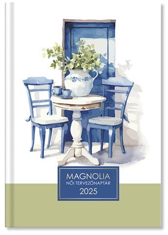 Határidőnapló Period Magnólia B/6 napi női tervező Chairs 2025 Méret: 115x165 mm Terjedelem: 352 oldal (320 naptároldal, 2026 januári tervező, különféle jegyzet- és tervezőoldalak) Naptárbeosztás: hétköznap 7–20 órás, 30 perces osztásban Papír: 70 g/m2 ofszet, fehér Nyomás: 2+2 szín, szürke-rózsaszín Naptárfedél: UV lakkozott színes papír Kötészet: cérnafűzö