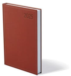 Két harmonizáló színű, bőrhatású anyag egyedi összeillesztésével, gyönyörű varrással készült agendák nagy méret-és színválasztékban. -matt, bőrhatású borító -időbeosztás: félórás, 8-18.00 h -lapok 70 g/m2, fehér ofszetpapírból -szürke-vörös nyomat -jelzőszalaggal -sarokperforáció -Budapest és Magyarország térképpel -havi összesített naptár -éves te