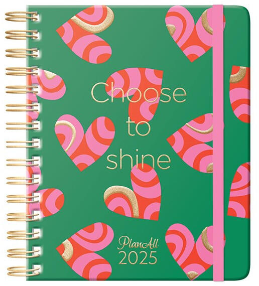 Határidőnapló PLANALL Midi Heart B/6 heti spirálos keményfedelű gumis 2025. B6 méretű, spirálozott, keményfedeles, gumi rögzítős heti tervezőnaptár, mely pont elfér a retikülben! Igazi "Life Coach"! Havi, napi, éves célok, anyagi tudatosság, hangulattábla, havi szokáskövető táblázat, havi motiváció, elmetérkép, negyedéves és éves értékelők, személyes fókusz, 2