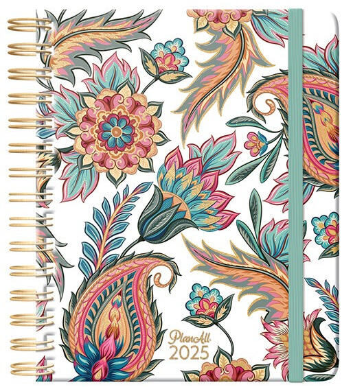 Határidőnapló PLANALL Classic Decor B/5 heti spirálos keményfedelű gumis 2025. B5 méretű, spirálozott, keményfedeles, gumi rögzítős, heti tervezőnaptár. Igazi "Life Coach"! Havi, napi, éves célok, anyagi tudatosság, hangulattábla, havi szokáskövető táblázat, havi motiváció, elmetérkép, negyedéves és éves értékelők, személyes fókusz, 88 matrica, hátsó tároló