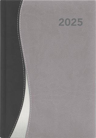 Naptár, tervező, A5, heti, DAYLINER, "Dubai", fekete-szürke A Dubai agendák puha, bőrhatású anyagból egyedi varásssal készülnek. A színek és formák valamint a stílusos vászonbetétek együtt alkotnak derűs összehangot. -időbeosztás: félórás, 8-20.00 h -műbőr, bőrhatású borító -lapok 70 g/m2, fehér ofszet papírból -jelzőszalaggal -sarokperforáció -Budapest és Ma
