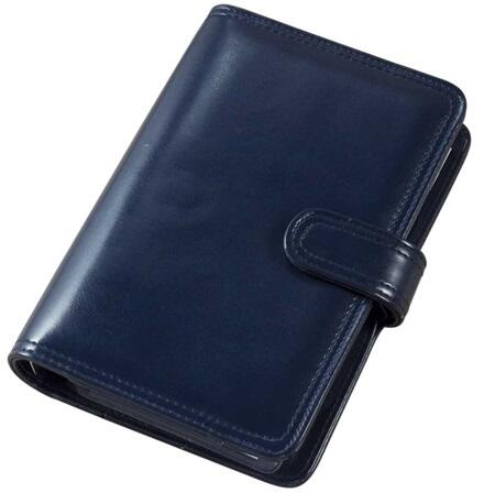 Fényes műbőr gyűrűs kalendárium M-es méret Elől bankkártya- és névjegytartóval, hátul jegyzet- és tolltartóval Papír: fehér Tokméret: 135x195 Lapméret: 95x171