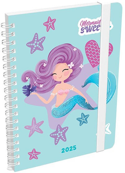 Határidőnapló LIZZY CARD Mermaid Sweet B/6 heti spirálozott gumis 2025. B6 méretű, spirálozott, gumipántos, heti tervező naptár, matrica oldallal, 128 +2 oldal, Mérete: 118x163 mm