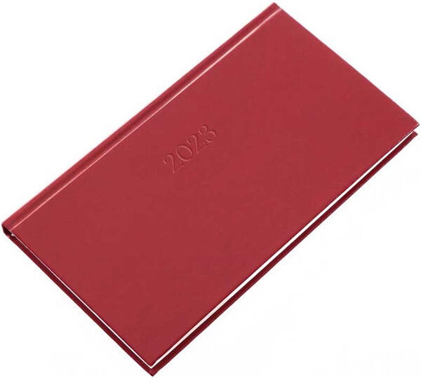 Realsystem 2025 Standard 5711-09 fekvő bordó zsebnaptár Fényes, kellemes tapintású műbőr, jól emblémázható. Fekvő zsebnaptár heti beosztású, 144 oldal, 13 hónapos, cérnafűzéssel, 70g-os fehér papírral. Egyediesítése: présfólia, vakdombor, szita, fémsarok(arany/ezüst). Méret: 90x165 mm