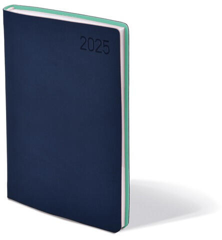 Kalendart Madeira 2025 M011 B5 heti beosztású kék-türkiz határidőnapló Matt, hőre színeződő műbőr bevonóval, flexibilis táblával készült, fehér tömbös. B5 méretű, heti beosztású, 144 oldal, sarokkerekített, jelzőszalaggal és sarokperforációval. Vaknyomással és présfólianyomással és szitázással emblémázható. Méret: 170x245 mm