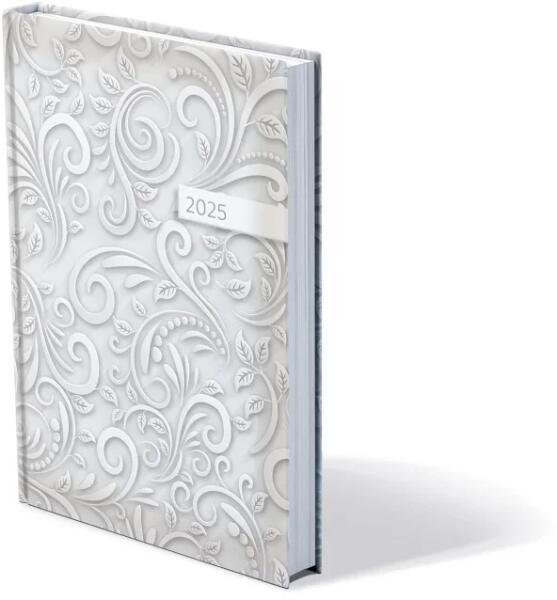 Librobello - Kalendárium Hölgyeknek, A nők lapja ajánlásával, különféle mintával. 3D élfestés. Design élfestéssel a naptártömb oldalait a borítók inspirálta színes formával láttuk el. B6 napi beosztású, 400 oldal, 70g fehér papírral, cérnafűzéssel, jelzőszalaggal és sarokperforációval. Egyediesítés: vakdombot, fémsarok(arany/ezüst). Méret: 115x165 mm