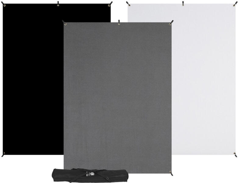 Westcott X-Drop 3 Darabos Szövet Háttér Készlet - Fotó-Stúdió Háttér - 150cm x 210cm (fekete/fehér/szürke) A Westcott X-Drop 3-Pack Backdrop Kit egy egyedülálló és költséghatékony háttérrendszer. Az X-drop rendszer tökéletes utazási használatra. Ez a legkönnyebb rendszer a piacon, kevesebb mint 1,5 kiló. Mérete 150x210 centiméter Háttér 100% poliészter X-drop állvá