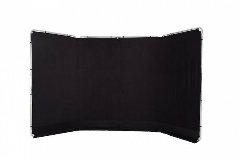 Panoráma háttér 4m fekete Önmagában megálló háttér Nagyon könnyű összeszerelés Tökéletes csoportképekhez Az anyag nyújtásával a ráncok eltűnnek Mosógépben 40 fokon mosható