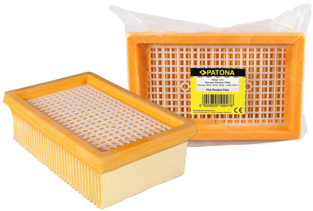 PATONA lapos pliszírozott szűrő f. Kärcher MV4 MV5 MV6 2.863-005.0A PATONA lapos pliszírozott szűrővel a Kärcher MV4 MV5 MV6 2.863-005.0-hoz lehetőség van nedves és száraz szívásra egyetlen szűrővel. A szűrő könnyen cserélhető a szűrőbetét kihajtásával. Biztosítja a porszívó elszívott levegőjének higiénikus pormentes tisztítását. Ön egy Márkaed terméket vás
