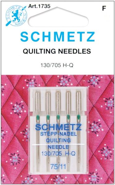 Schmetz patchwork/quilting tű. A SCHMETZ gépi varrótűk a világ élvonalába tartozó termékei. Gyártva: USA Gyári kód: 130/705 H-Q Méret: 75/11 Színkód: zöld A csomag tartalma: 5 varrógéptű Lapolt oldalú géptű, elsősorban foltvarráshoz. Steppeléshez tökéletes, mert könnyedén átmegy a 3 réteg anyagon, nem törik el. ---- A Schmetz német eredetű varrógép-tűket 1851