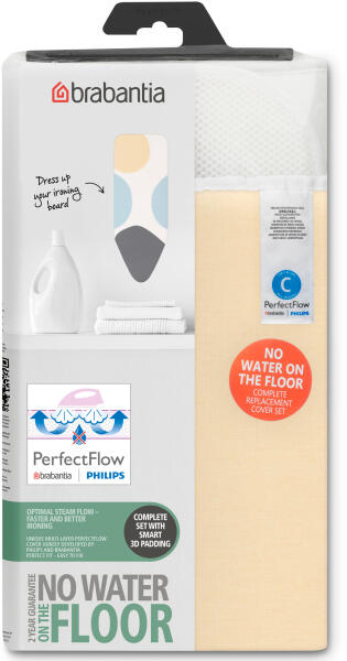 Hozza ki a legtöbbet gőzölős vasalójából vagy gőzfejlesztőjéből ezzel a teljesen felszerelt PerfectFlow vasalódeszka huzattal. Az innovatív, háromrétegű szövetnek köszönhetően könnyen kivasalhatja a gyűrődéseket. Ugyanakkor a huzat elnyeli a kondenzált gőzt, így a padlója soha többé nem fröccsen be. Specifikációk: - fő rész anyaga: szövet - fő kialakítás: bub