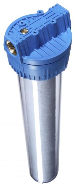 Műanyag szűrõház 3 részes kivitelben. A szűrõház csatlakozása réz betétgyűrűvel ellátott. A betéttõl függõen, mindig az általunk kiválasztott feladatnak megfelelõ szűrést biztosít. A szűrõház edénye átlátszó. A fej réz légtelenítõ csavarral ellátott. A szűrõházak az európai szabványoknak megfelelõen kerültek kialakításra, így más gyártók betétjeive