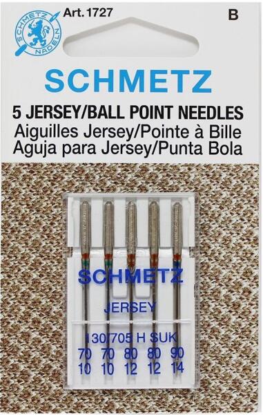 Schmetz Jersey gömbhegyű varrógéptű. A SCHMETZ gépi varrótűk a világ élvonalába tartozó termékei. Gyártva: USA Gyári kód: 130/705H-SUK Méretek: 70/10 2db, 80/12 2db, 90/14 1db Színkód: narancssárga A csomag tartalma: 5 varrógéptű Lapolt oldalú géptű, kifejezetten pamut és kötöttáru varrására! Használható még tüll, jersey anyagokhoz, műszörméhez is. ---- A Sch