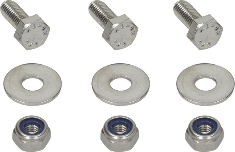 készlet tartalma: | 3 db hatszögletű fejű csavar | 3 db lapos alátét | 3 db önzáró anyacsavar