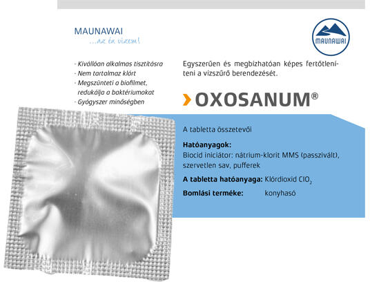 Kiváló tisztító-fertőtlenítő hatás Nátrium-klorit (MMS passzivált) bio fertőtlenítő tabletta Nem tartalmaz klórt Megszünteti a bio-filmet a víztisztító készülékben Redukálja a baktériumokat Gyógyszer minőség Bomlásterméke: NaCl - konyhasó
