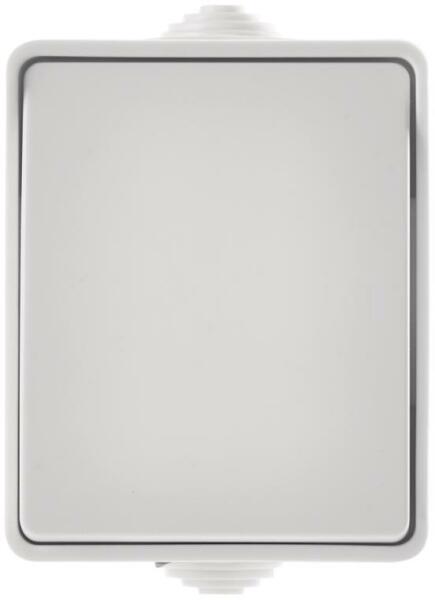 6. váltóáramú kapcsoló (lépcsőházba, vízálló). Alkalmazás: egy lámpa irányítása két helyről. Kivitel: kapcsoló egy fedéllel. Felszerelés: falra. Védettség: IP54. Feszültség: 250V / 10A. Csomag: 1 db.