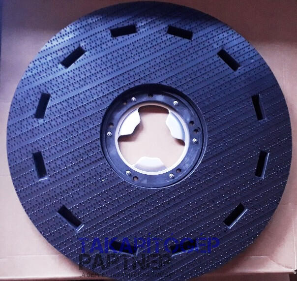 Padlósúroló automatához való, professzionális pad hajtó tányér. A tányér teljesen felületén van tapadófelület, ami maximális korong tapadást eredményez, míg a micro szivacs réteg segíti elnyelni az egyenetlen talaj ütéseit, ezáltal megnöveli a tányér élettartamát. Tökéletesen illeszkedő, ellenőrzött csatlakozással. Méret: 460 mm Anyag: polipropilén Eureka E46B