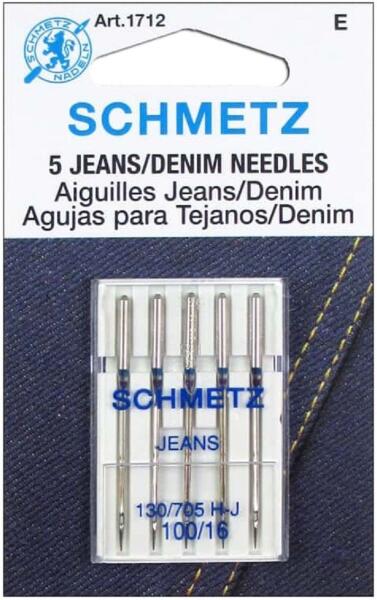 Schmetz Jeans farmer varrótű. A SCHMETZ gépi varrótűk a világ élvonalába tartozó termékei. Gyártva: USA Gyári kód: 130/705H-J Méret: 100/16 Színkód: kék A csomag tartalma: 5 varrógéptű Lapolt oldalú géptű, kifejezetten farmer és egyéb vastag anyagok számára. Farmert ne is kezdj el másfajta varrógéptűvel varrni! ---- A Schmetz német eredetű varrógép-tűket 1851 ó