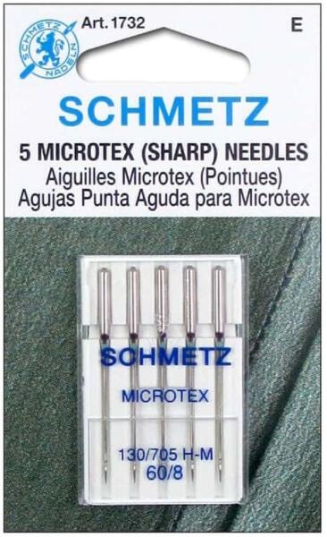 Schmetz Microtex varrógéptű. A SCHMETZ gépi varrótűk a világ élvonalába tartozó termékei. Gyártva: USA Gyári kód: 130/705H-M Méret: 60/8 Színkód: lila A csomag tartalma: 5 varrógéptű Lapolt oldalú géptű, kifejezetten vékony anyagok, pl. szatén, organza, siffon, csúszós függöny varrásához. A speciális kialakításnak, hosszú vékony hegyének köszönhetően nem ron