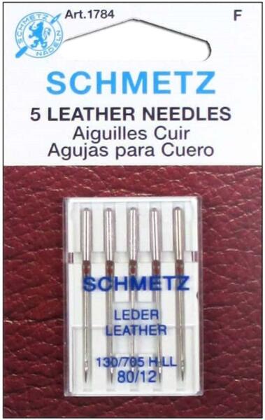 Schmetz Leather bőrvarró varrógéptű. A SCHMETZ gépi varrótűk a világ élvonalába tartozó termékei. Gyártva: USA Gyári kód: 130/705HLL Méret: 80/12 Színkód: barna A csomag tartalma: 5 varrógéptű Lapolt oldalú géptű, kifejezetten vékony bőrhöz használható, lándzsa hegyű tű, ami vágja a bőr, nem roncsolja. Használható eredeti bőrhöz, műbörhöz, de akár papir v
