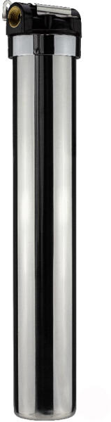 Rozsdamentes fém vízszűrő ház ABS műanyag fejjel, tartókonzollal és ház nyitó kulccsal.