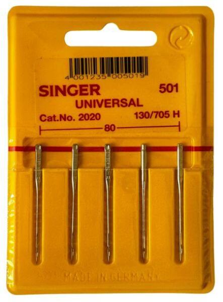 B ármely háztartási varrógéphez használható. (501-130/705H) 1 levél tartalma 5db varrógéptű T űhegy: Normál Vastagsá g: 80 Normál anyagokhoz