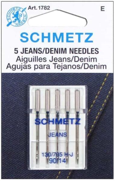 Schmetz Jeans farmer varrótű. A SCHMETZ gépi varrótűk a világ élvonalába tartozó termékei. Gyártva: USA Gyári kód: 130/705H-J Méret: 90/14 Színkód: kék A csomag tartalma: 5 varrógéptű Lapolt oldalú géptű, kifejezetten farmer és egyéb vastag anyagok számára. Farmert ne is kezdj el másfajta varrógéptűvel varrni! ---- A Schmetz német eredetű varrógép-tűket 1851 ót