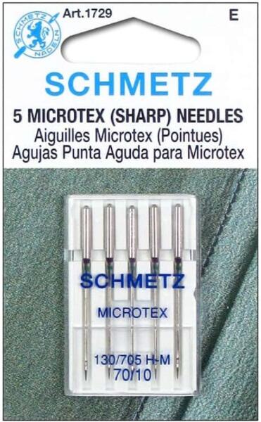 Schmetz Microtex varrógéptű. A SCHMETZ gépi varrótűk a világ élvonalába tartozó termékei. Gyártva: USA Gyári kód: 130/705H-M Méret: 70/10 Színkód: lila A csomag tartalma: 5 varrógéptű Lapolt oldalú géptű, kifejezetten vékony anyagok, pl. szatén, organza, siffon, csúszós függöny varrásához. A speciális kialakításnak, hosszú vékony hegyének köszönhetően nem ro