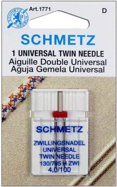 Schmetz univerzális iker (dupla) varrógéptű. A SCHMETZ gépi varrótűk a világ élvonalába tartozó termékei. Gyártva: USA Gyári kód: 130/705H ZWI Méret: 100/16 Tűk közötti távolság: 4mm A csomag tartalma: 1 iker varrógéptű Lapolt oldalú géptű, általános felhasználásra. 60-70 vékony anyagokhoz, 80-90 közepesen vastaghoz, 100-120 vastagabb anyagokhoz. ---- A Schmetz né