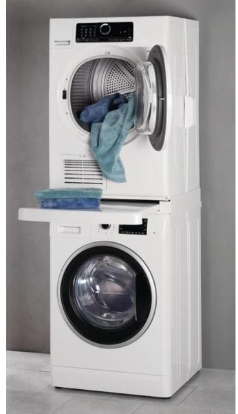 Segítségével gyorsan, könnyen és biztonságosan rögzítheti szárítógépét a mosógépérePraktikus kihúzható fiókjának köszönhetően hajlongás nélkül ki és bepakolhatja szárítógépétUniverzális, a legtöbb 60cm széles készülék összeépítéséhez használható, márkától függetlenül. Mosógép mélysége a fal felé minimum 45cm kell, hogy legyen. Nagy előnye, ho