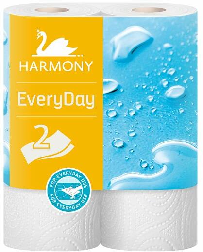 Papírtörlő 2-rétegű HARMONY EVERYDAY - 2 tekercsKétrétegű konyhai papírtörlő, különösen tartós és nedvszívó, feltekerve 11 m – 2db. A papírtörlő lapok ketté vannak osztva, ezért kisebb szennyeződés feltakarítására alkalmasak.