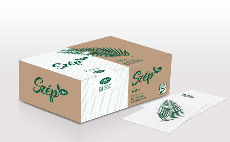 Fóliamentes szép plus fóliamentes textil hatású szalvéta pálma mintával 160 db 2 rétegű, textil hatású papírszalvéta fóliamentes csomagolásban, pezsgőszínre pálma mintával nyomva. Modern -téglalapra- hajtott kialakítása minden terítésnél jól mutat. - 2 réteg - 160 lap/csomag - 38x19 cm lapméret