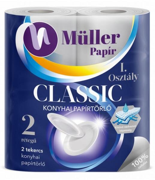 HÁZTARTÁSI PAPÍRTÖRLŐ 2 RÉTEGŰ 50 LAP/ TEKERCS 2 TEKERCS/CSOMAG MÜLLER CLASSIC FEHÉR