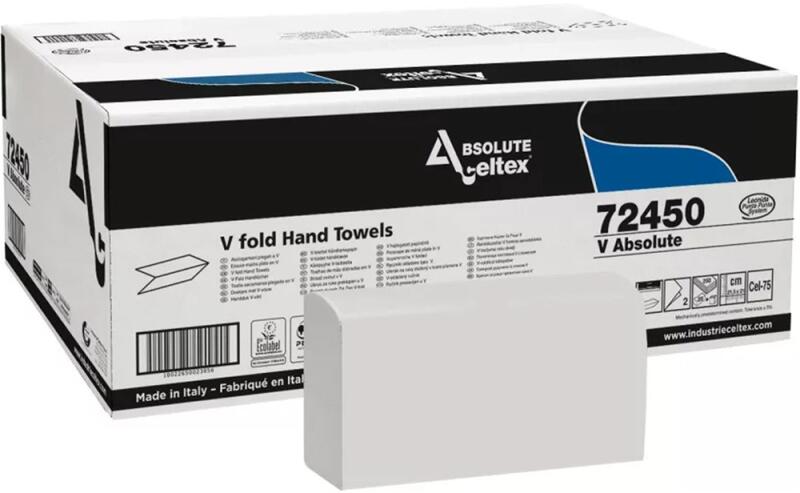 KÉZTÖRLŐ 2 RÉTEGŰ V HAJTOGATÁSÚ 250 LAP/CSOMAG 20 CSOMAG/KARTON ABSOLUTE CELTEX_72450 FEHÉR