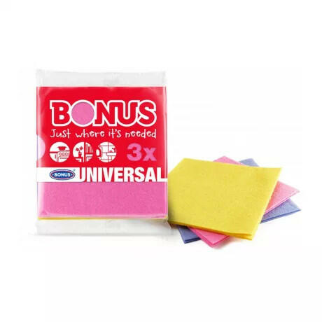 A Bonus általános törlőkendő kiválóan alkalmas a háztartási felületek tisztítására és tisztán tartására. Egy csomagban 3 db törlőkendő van, 3 különböző színben - rózsaszín, sárga, kék. A takarítás során a legnagyobb kihívás, hogy a lehető legkülönbözőbb felületeket kell megtisztítanunk, minél gyorsabban és a lehető legkevesebb eszköz felhasználásával
