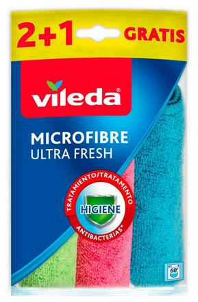 Törlőkendő, 30% mikroszállal, 2+1 db, VILEDA Rendkívüli nedvszívó képességű, 30 % mikroszállal a nagyobb tisztítóerőért. Eltávolítja a baktériumok akár több, mint 99%-át – csak vízzel. 99%-ban pedig megakadályozza a baktériumok megjelenését a törlőkendőn. Nedvesen és szárazon is használható. A mikroszálnak köszönhetően kiváló nedvszívóképességgel és t